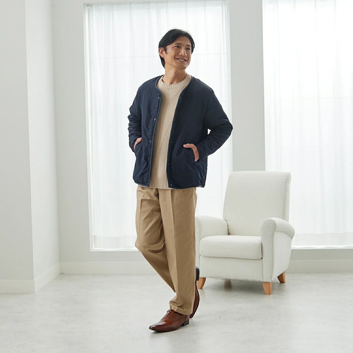 ・裏地ツイル生地は安っぽく見えない、程よいツヤ感で大人の雰囲気に。スラックスとの相性も◎。