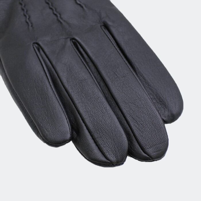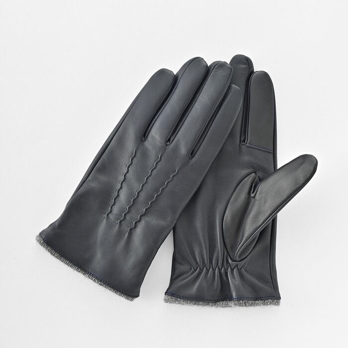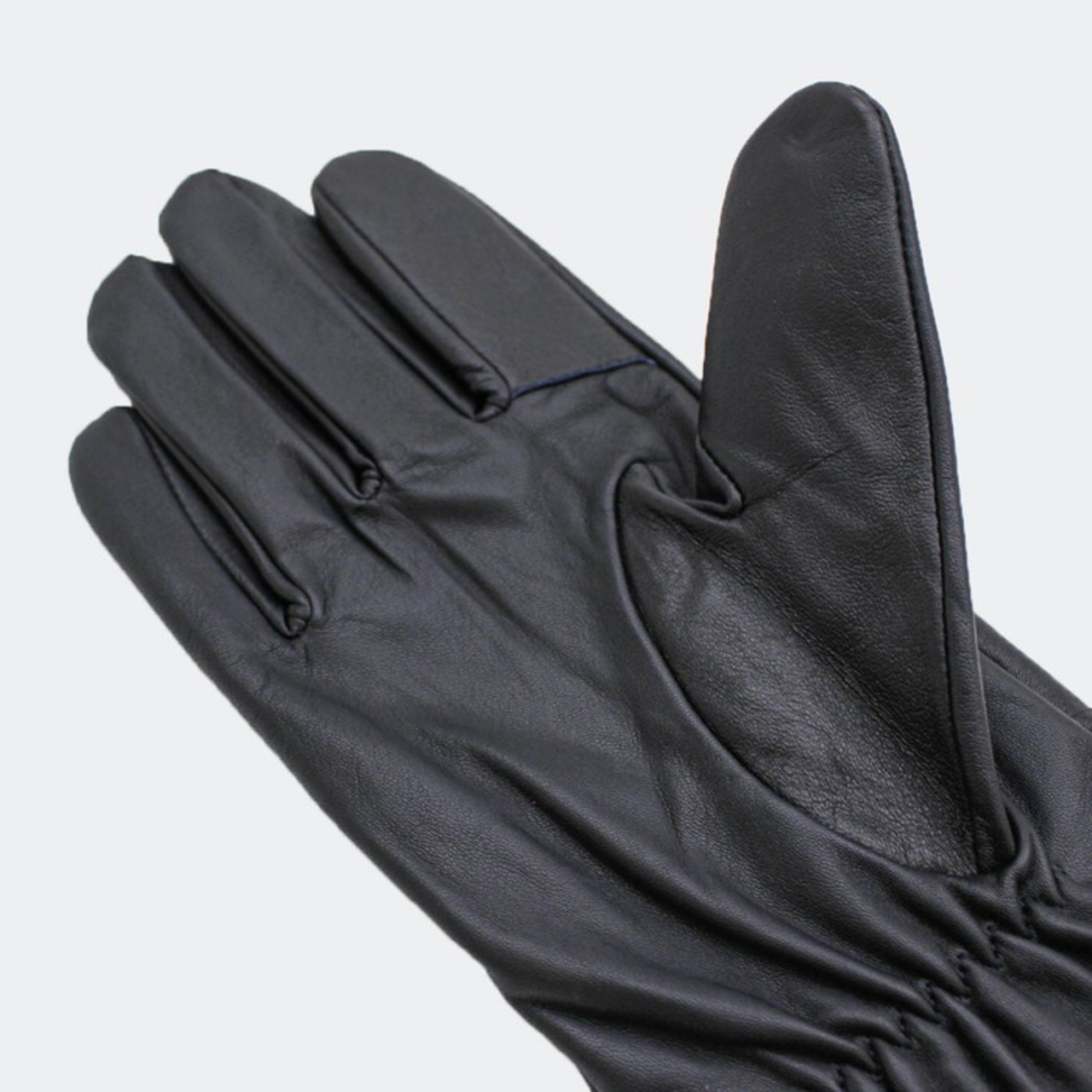 「糸絞り」と呼ぶ3本の立体的なウェーブの飾りが特徴のベーシックなレザーグローブ。