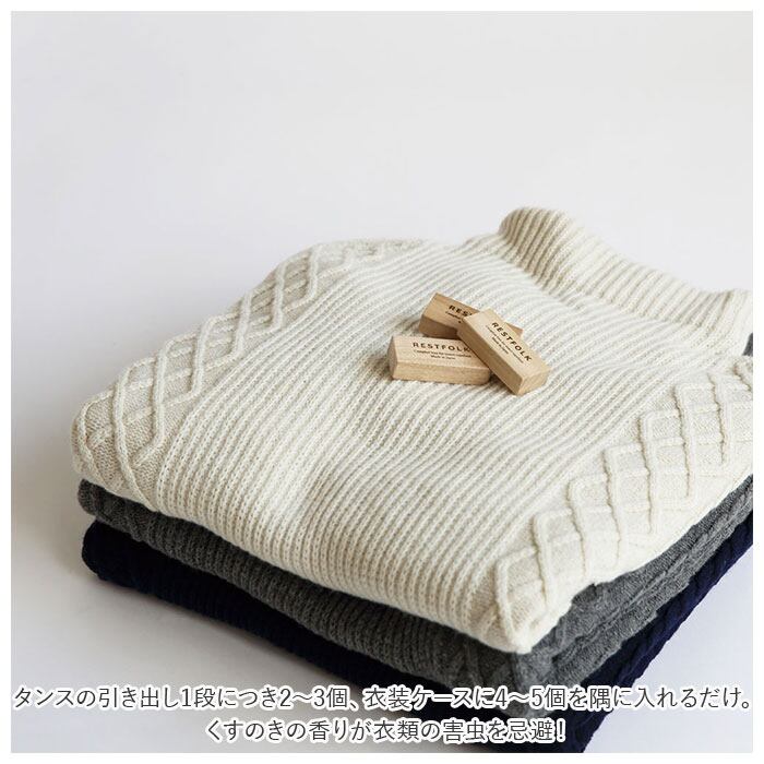 ・タンスの引き出し1段につき2~3個、衣装ケースに4~5個を隅に入れるだけ。くすのきの香りが衣類の害虫を忌避!