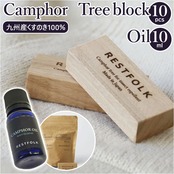 ・くすのきの力で大切な衣類を守る!CAMPHOR(カンフル)ツリーブロック 10pcsとオイルのセット。