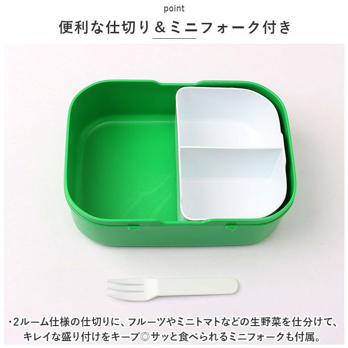 ・2ルーム仕様の仕切りに、フルーツやミニトマトなどの生野菜を仕分けて、キレイな盛り付けをキープ◎サッと食べられるミニフォークも付属。