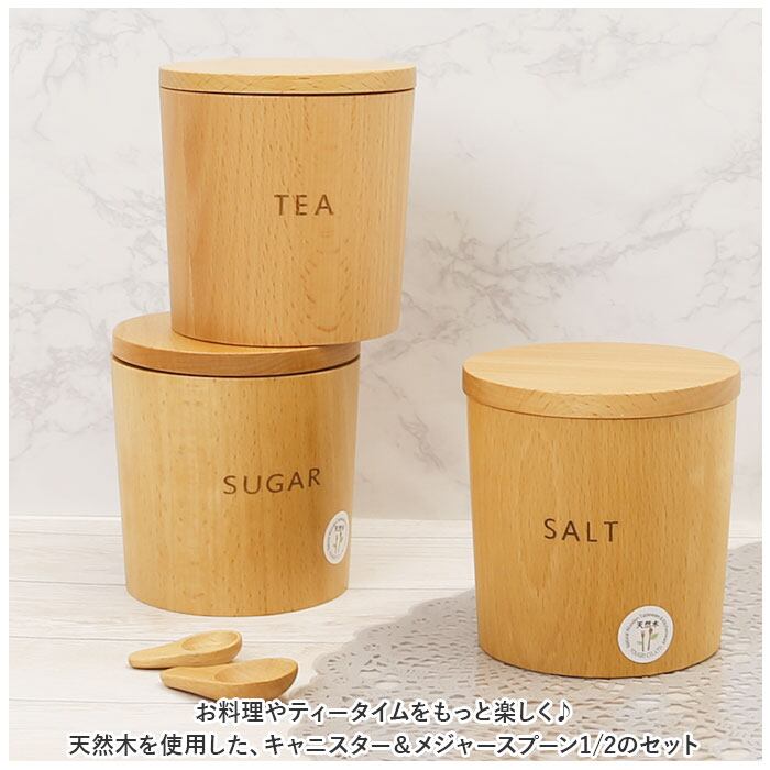 キャニスター メジャースプーン1/2 セット 通販 保存容器 250ml 砂糖 塩 コーヒー ティー 無地 調味料入れ ストッカー 容器 木製 入れ物 食器 使いやすい おしゃれ 台所用品 キッチン用品 雑貨 蓋付き