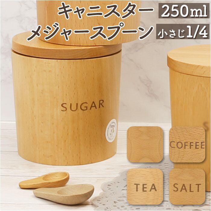 キャニスター メジャースプーン1/4 セット 通販 保存容器 250ml 砂糖 塩 コーヒー ティー 無地 調味料入れ ストッカー 容器 木製 入れ物 食器 使いやすい おしゃれ 台所用品 キッチン用品 雑貨 蓋付き