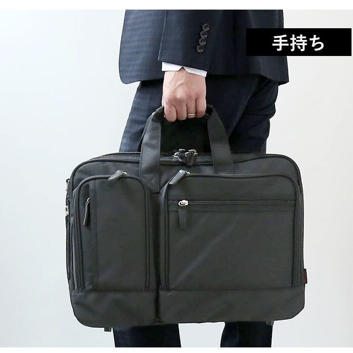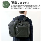・B4サイズの書類が入る大きさ。クッション性のあるPCポケットにはA4サイズのノートパソコンが収納可能。必要な書類や荷物がザクザク入る大容量サイズ。これ1つで普段の通勤から出張までOK。ビジネスマンにぴったりのアイテム。