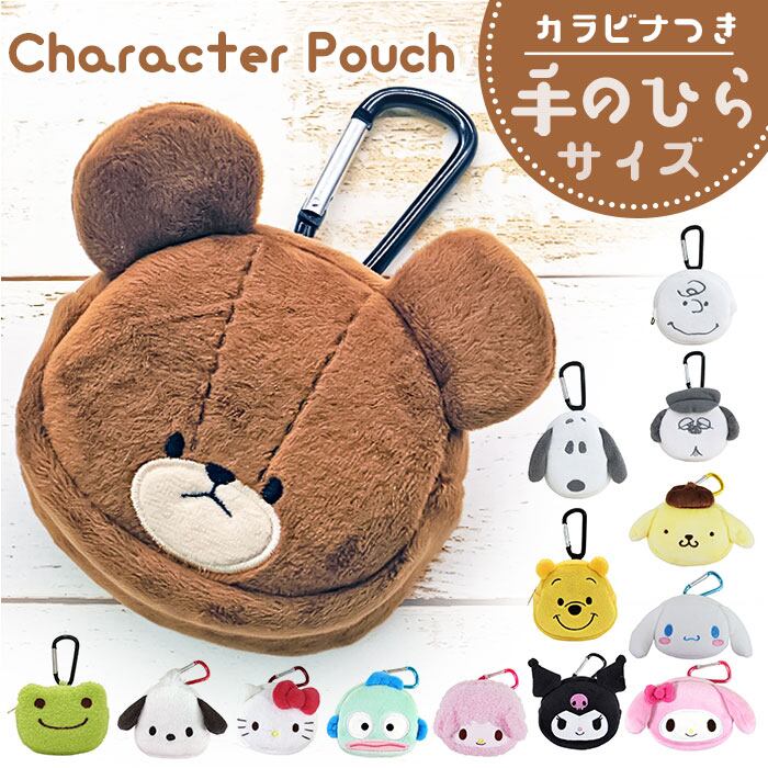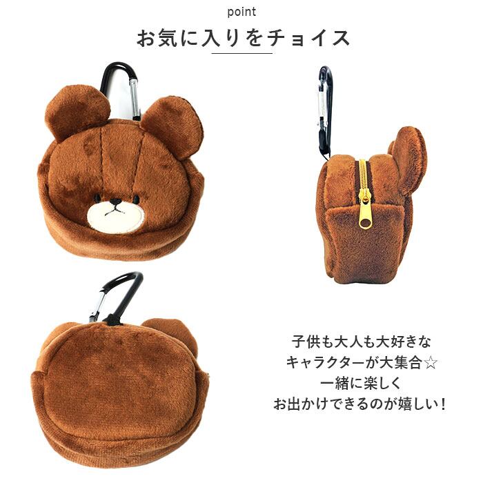 ・キュートなキャラクターのフェイスデザイン♪小物を忍ばせておける、カラビナ付きミニポーチが新登場。