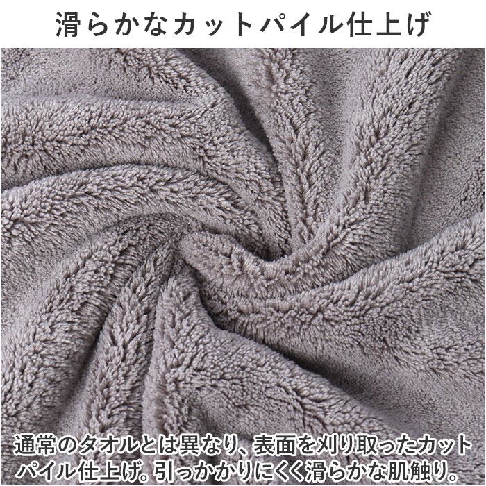 ・通常のタオルとは異なり、表面を刈り取ったカットパイル仕上げ。引っかかりにくく滑らかな肌触り。