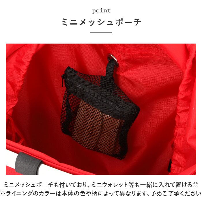 ・ミニメッシュポーチも中に付いており、買い物のメモやミニウォレット等も一緒に入れて置けるのもポイント!