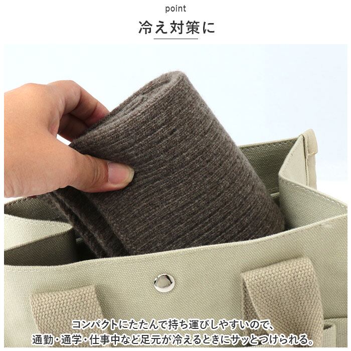 ・コンパクトにたたんで持ち運びしやすいので、通勤・通学・仕事中など足元が冷えるときにサッとつけられる。