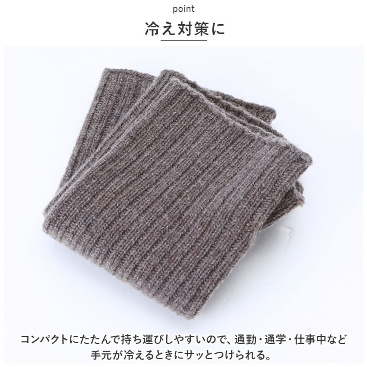 ・コンパクトにたたんで持ち運びしやすいので、通勤・通学・仕事中など手元が冷えるときにサッとつけられる。