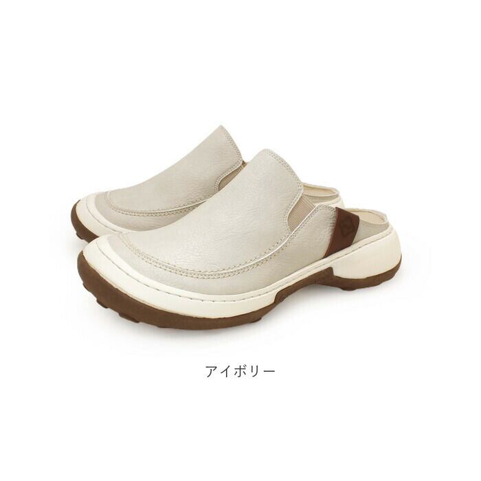 ・スリッパのようにかかとがフラットになったサボスタイルに、サッと履けるサイドゴア付きで心地よいフィット感。