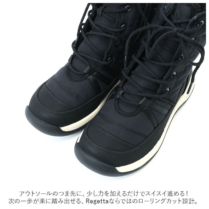 ・アウトソールのつま先に、少し力を加えるだけでスイスイ進める!次の一歩が楽に踏み出せる、Regettaならではのローリングカット設計。