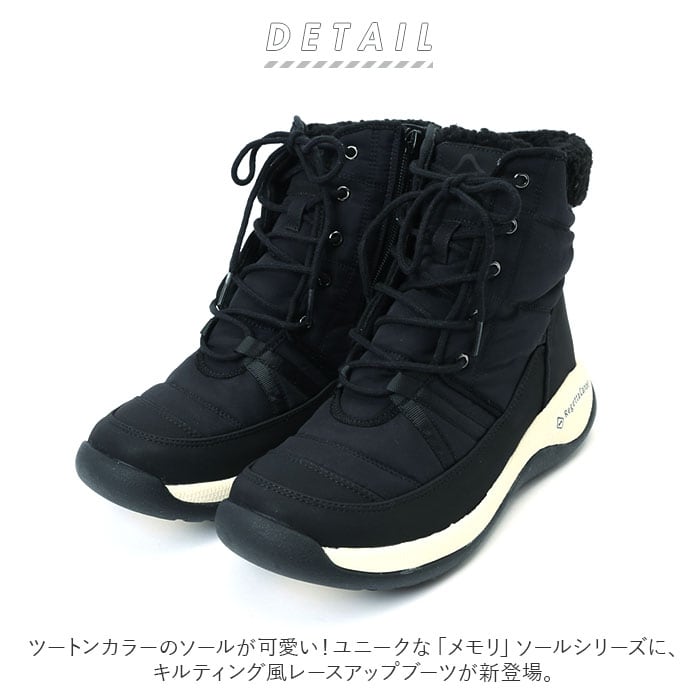 ・ツートンカラーのソールが可愛い!ユニークな「メモリ」ソールシリーズに、キルティング風レースアップブーツが新登場。
