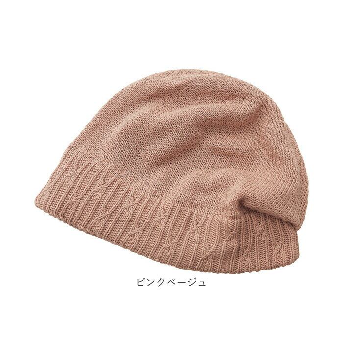 ・ざっくりとした編み方で通気性をプラス。長時間被ったままでもムレにくいのがポイント。