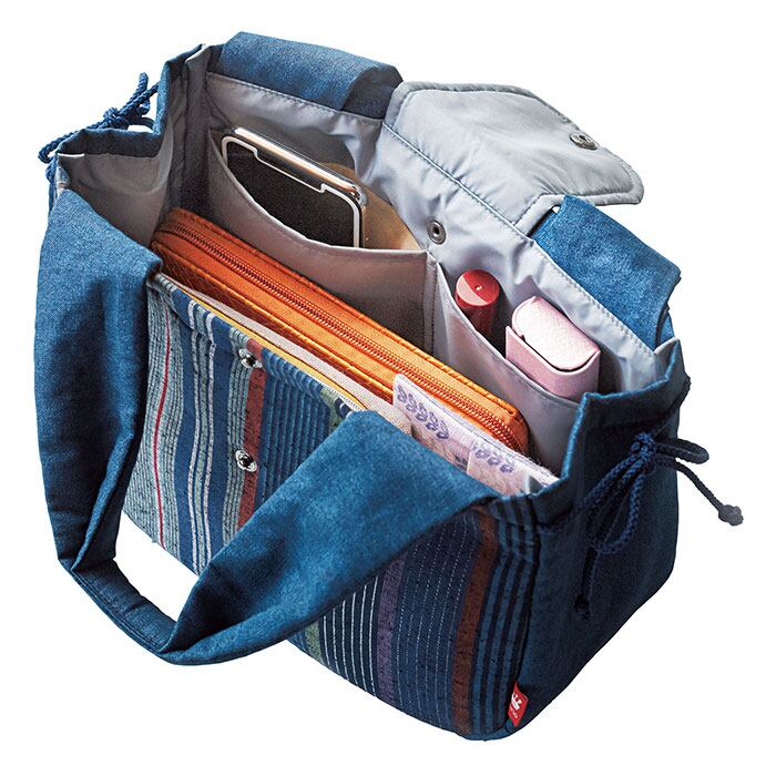 ・両サイドの紐で、横マチ調節OK。荷物の量に合わせてスタイルチェンジできちゃう!