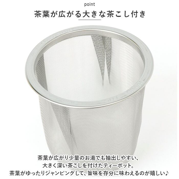 【茶葉が広がる大きな茶こし付き】