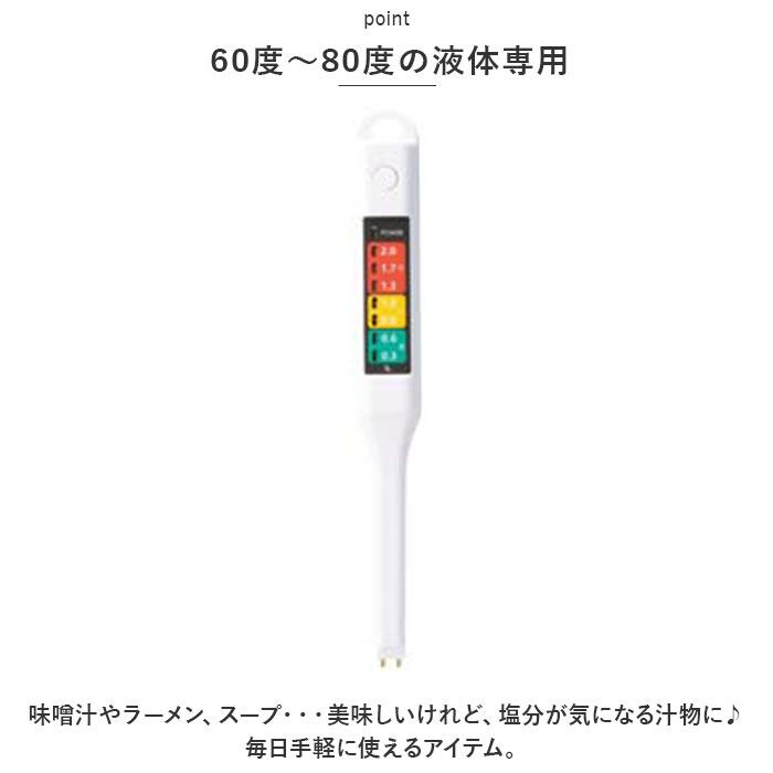 ・塩分濃度は0.3~2.0%内の7段階表示可能。濃いめの測定結果なら、その場で料理にひと工夫すればOK◎