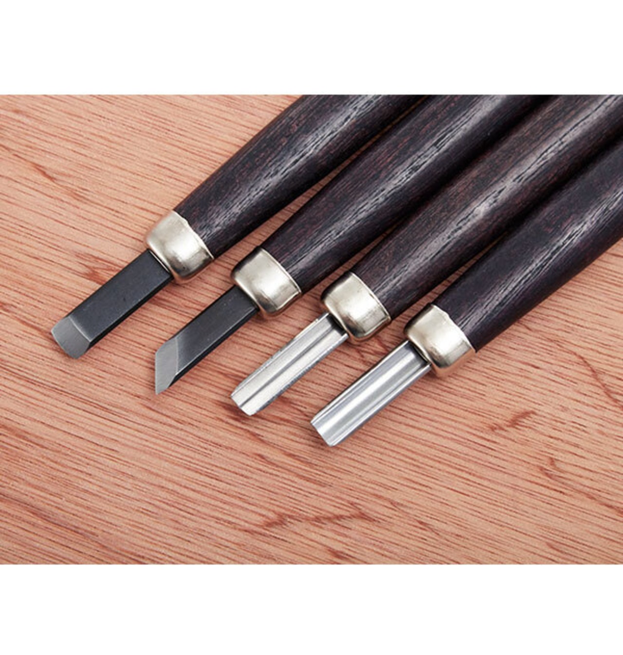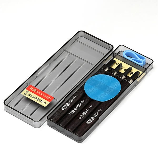 平刀、切出刃、三角刃、中丸刃の4種類の彫刻刀がセットになっています。