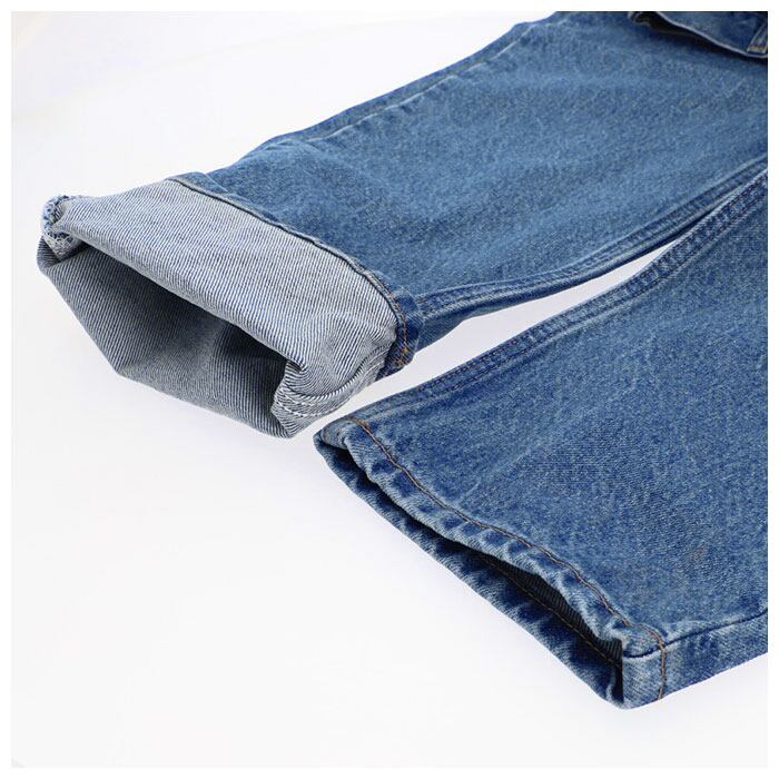 ・耐久性がある本格的な15オンスのデニム生地にウォッシュ加工を施した生地を使用。