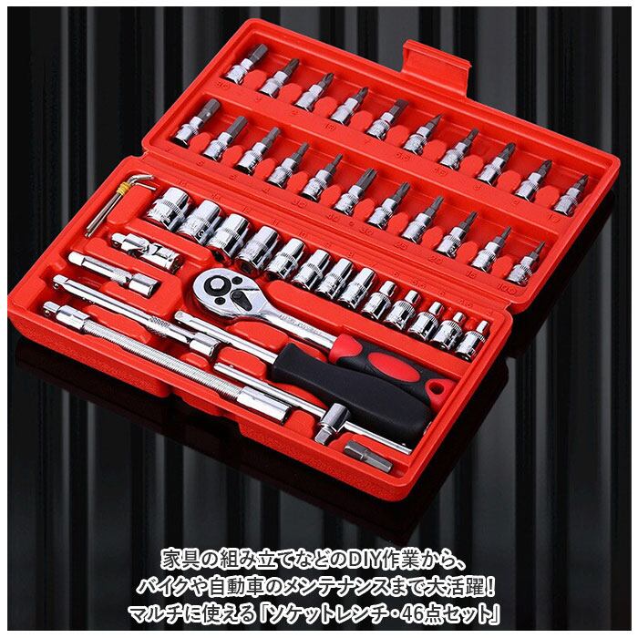 ・家具の組み立てなどのDIY作業から、バイクや自動車のメンテナンスまで大活躍!マルチに使える「ソケットレンチ・46点セット」