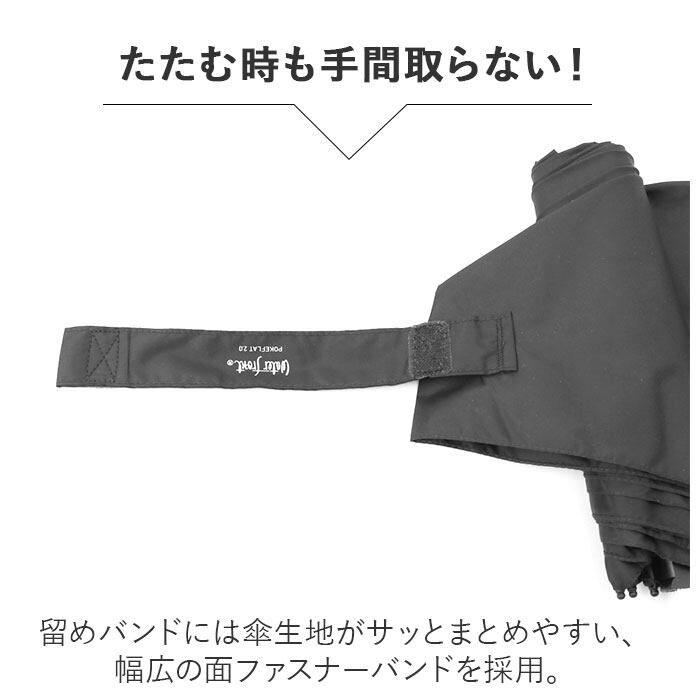 ・留めバンドには傘生地がサッとまとめやすい、幅広の面ファスナーバンドを採用。