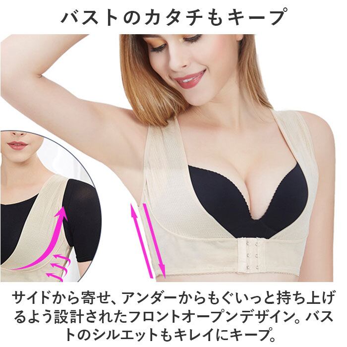 ・サイドから寄せ、アンダーからもぐいっと持ち上げるよう設計されたフロントオープンデザイン。バストのシルエットもキレイにキープ。