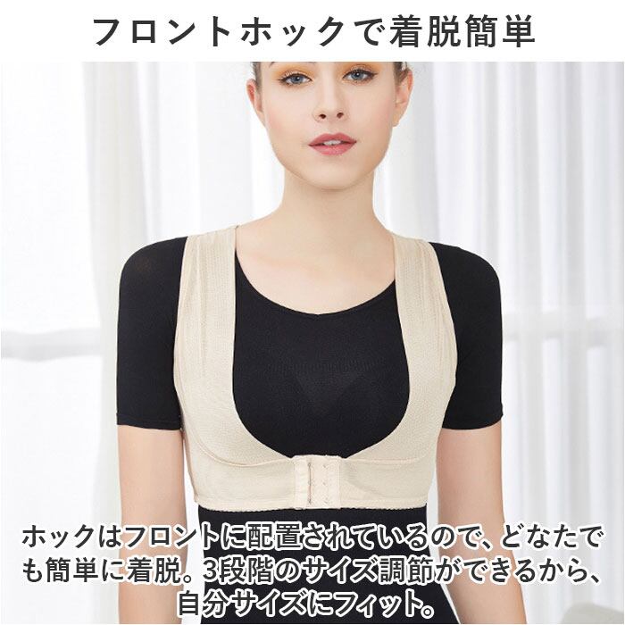 ・ホックはフロントに配置されているので、どなたでも簡単に着脱。3段階のサイズ調節ができるから、自分サイズにフィット。