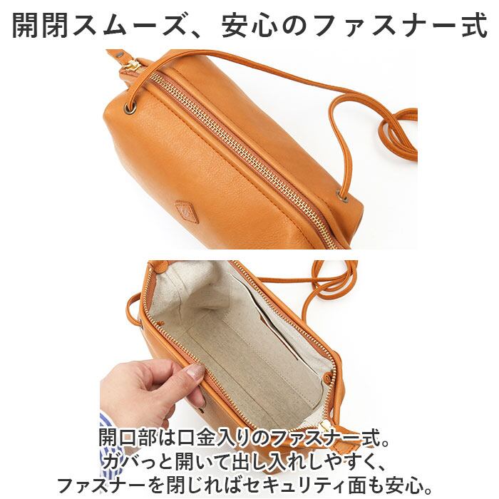 ・開口部は口金入りのファスナー式。ガバっと開いて出し入れしやすく、ファスナーを閉じればセキュリティ面も安心。