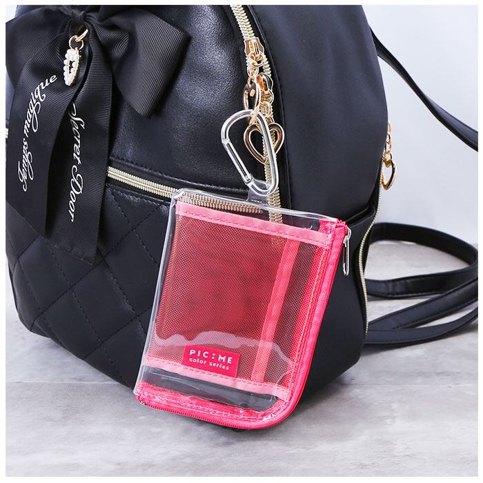 ・内側にトレカが入るクリアポケットと、小物入れに便利なメッシュポケットを装備!推しグッズはもちろん、エチケットアイテムなどをまとめるポーチとしても活躍。