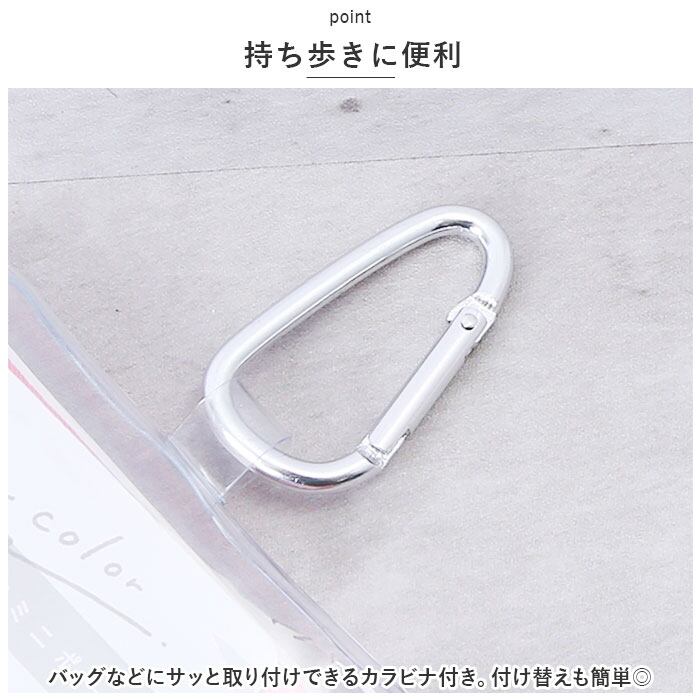 ・バッグなどにサッと取り付けできるカラビナ付き。付け替えも簡単◎
