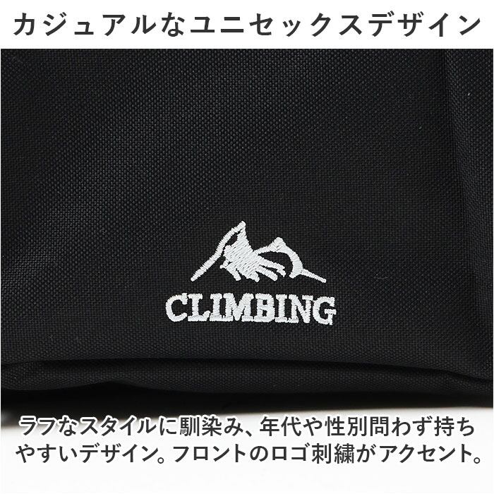 ・ラフなスタイルに馴染み、年代や性別問わず持ちやすいデザイン。フロントのロゴ刺繍がアクセント。上部には持ち手付き。