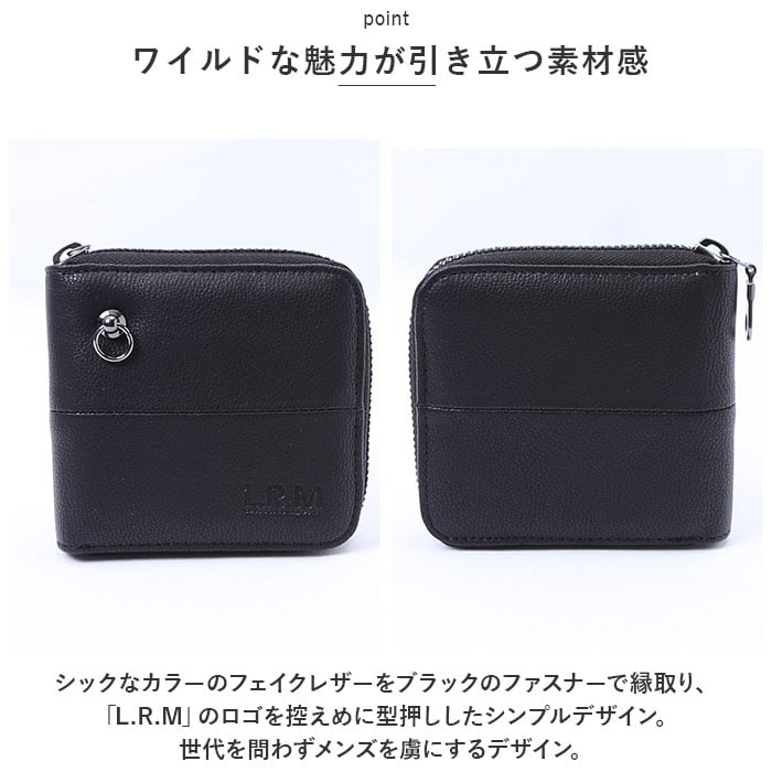 ・シックなカラーのフェイクレザーをブラックのファスナーで縁取り、「L.R.M」のロゴを控えめに型押ししたシンプルデザイン。ティーンのボーイズからビジネスパーソンまで、世代を問わずメンズを虜にするデザイン。
