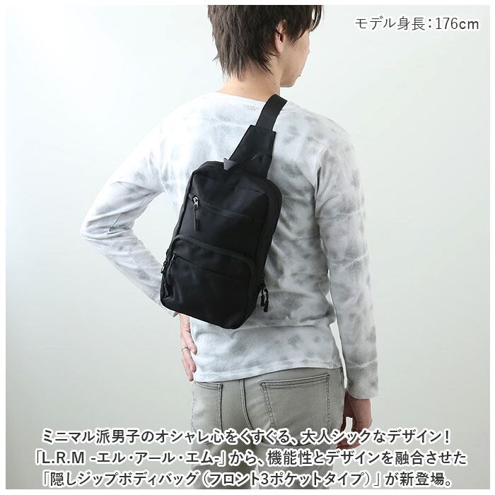・ミニマル派男子のオシャレ心をくすぐる、大人シックなデザイン!「L.R.M -エル・アール・エム-」から、機能性とデザインを融合させた「隠しジップボディバッグ(フロント3ポケットタイプ)」が新登場。