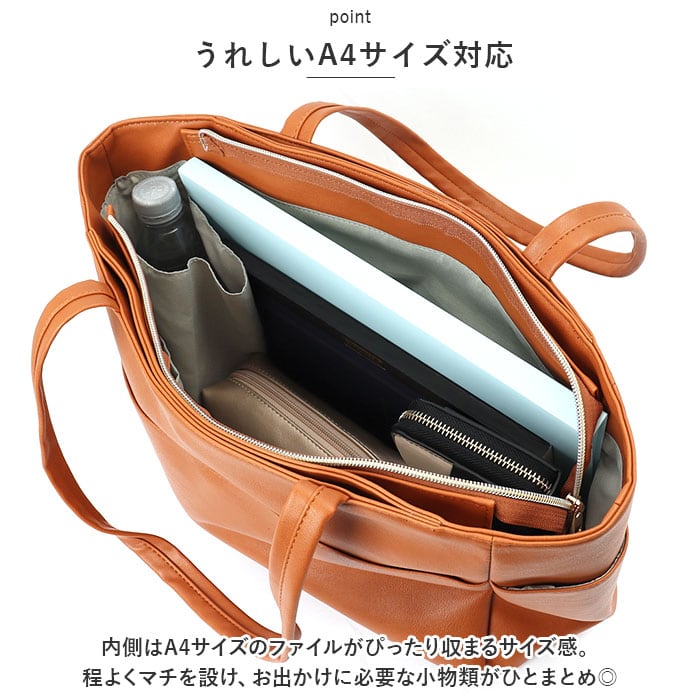 ・通勤・通学時に大活躍!両あおりポケット付きの合皮トートが新登場。