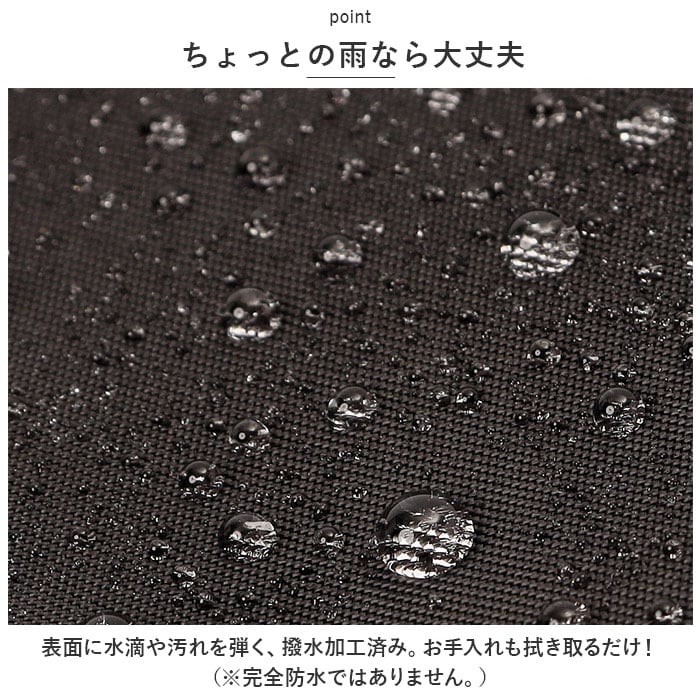 ・表面に水滴や汚れを弾く、撥水加工済み。お手入れも拭き取るだけ!(※完全防水ではありません。)