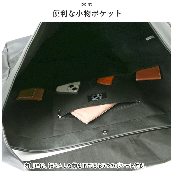 ・ショルダー部分は、肩に負担がかかりにくい幅広設計。バッグ自体が重さを感じにくく、毎日に通勤や旅行など長時間移動の際にもおすすめ。