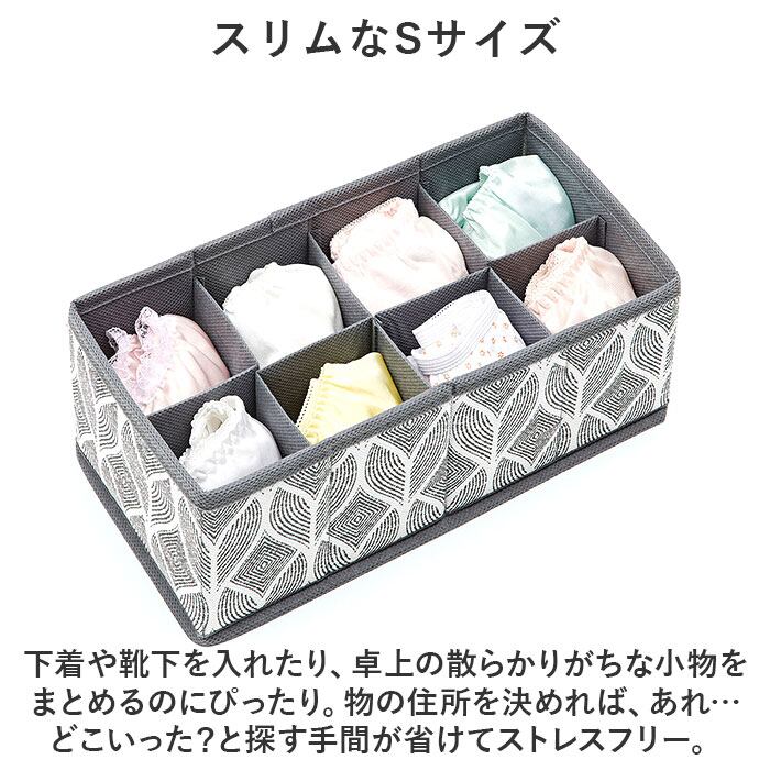 仕切り 変えられる 収納ケース S 通販 仕切りサイズ 調整 収納 整理 片づけ 片付け 引き出し ボックス 衣類 下着 仕分け 北欧 小物 整頓 折りたたみ コンパクト アンダーウェア 軽い 軽量 すきま収納 おしゃれ かわいい 便利 使いやすい 通気性