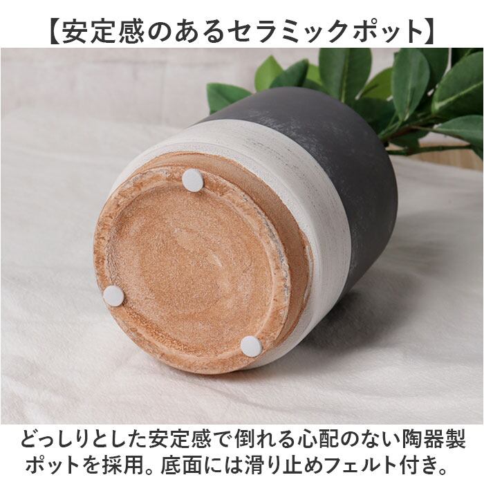 ・どっしりとした安定感で倒れる心配のない陶器製ポットを採用。底面には滑り止めフェルト付き。