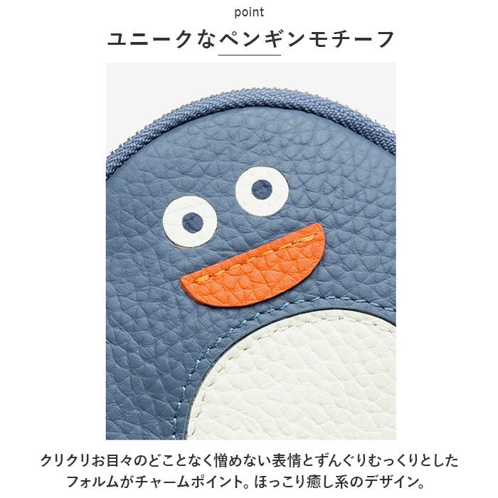 ・柔らかな質感とリッチなシボ感が際立つレザー素材を使用し、コロンと丸みのあるペンギンさんの姿をふんわり可愛らしく表現。
