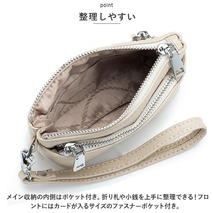 ・フロントにはカードが入るサイズのファスナーポケット付き。