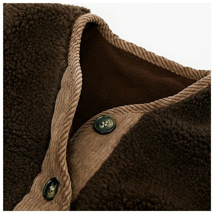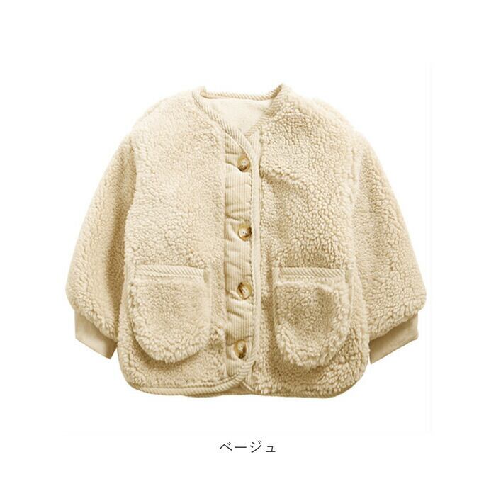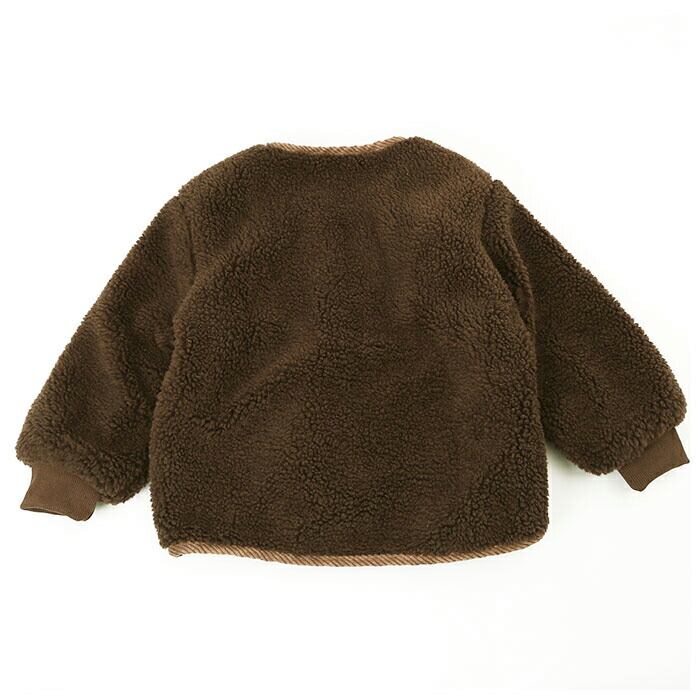 ・毛布のようにボリューミーなボア生地を、暖かみのあるコーデュロイ生地で縁取った本格キッズジャケット。