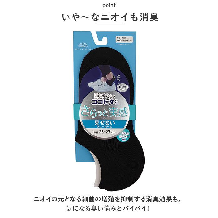 ココピタ メンズ さらっと 2足 通販 ここぴた ここピタ フットカバー 靴下 二足 ソックス 滑り止め カバーソックス スリッポン スニーカー ローファー メッシュ 消臭 吸水 速乾 脱げないココピタ プラス さらっと実感 okamoto 岡本 レッグウェア