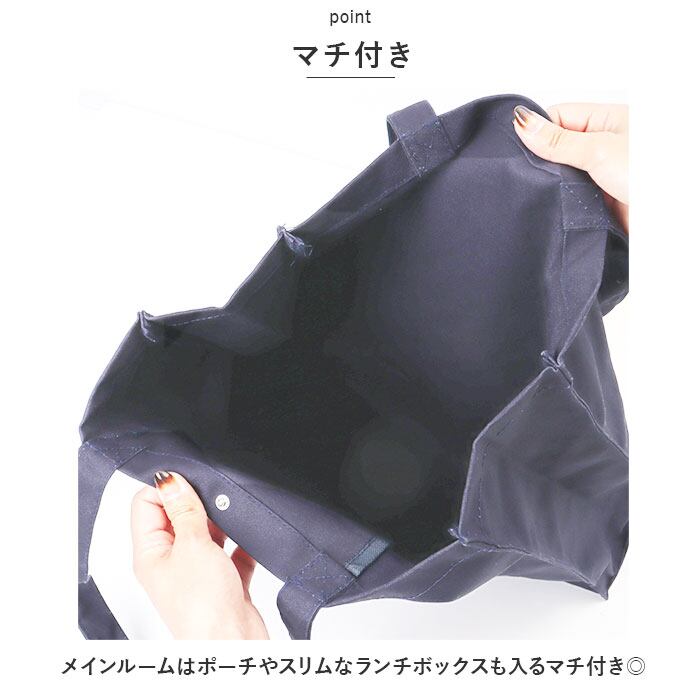 ・メインルームはポーチやスリムなランチボックスも入るマチ付き◎