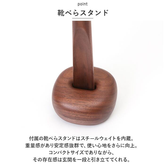 ・付属の靴べらスタンドはスチールウェイトを内蔵。重量感があり安定感抜群で、使い心地をさらに向上。コンパクトサイズでありながら、その存在感は玄関を一段と引き立ててくれる。