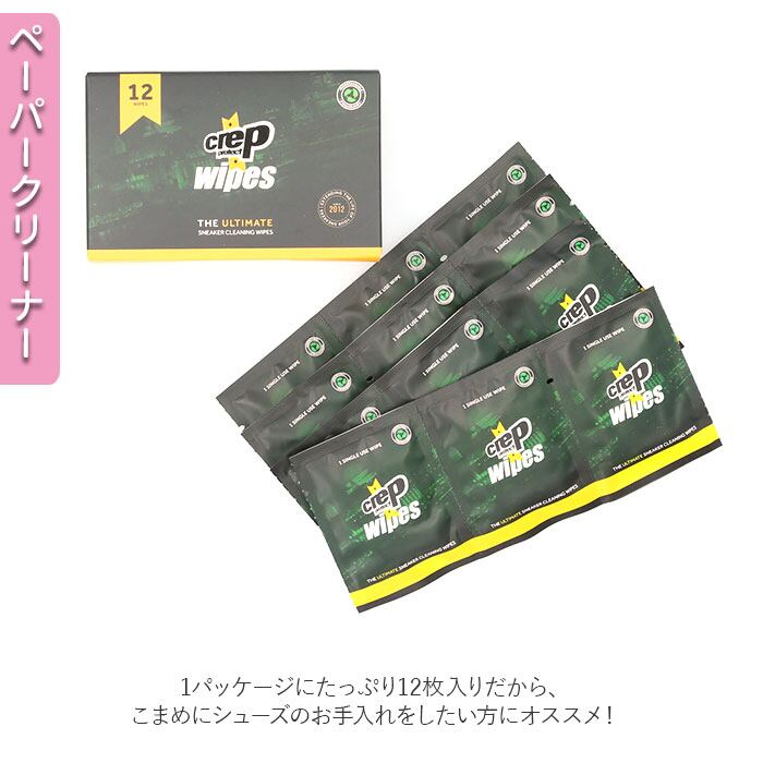1パッケージにたっぷり12枚入りだから、こまめにシューズのお手入れをしたい方にオススメ!「Crep Protect Wipes」のロゴがお洒落な缶ケース付き。