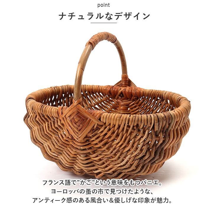 ・フランス語で”かご”という意味をもつパニエ。ヨーロッパの蚤の市で見つけたような、アンティーク感のある風合い&優しげな印象が魅力。