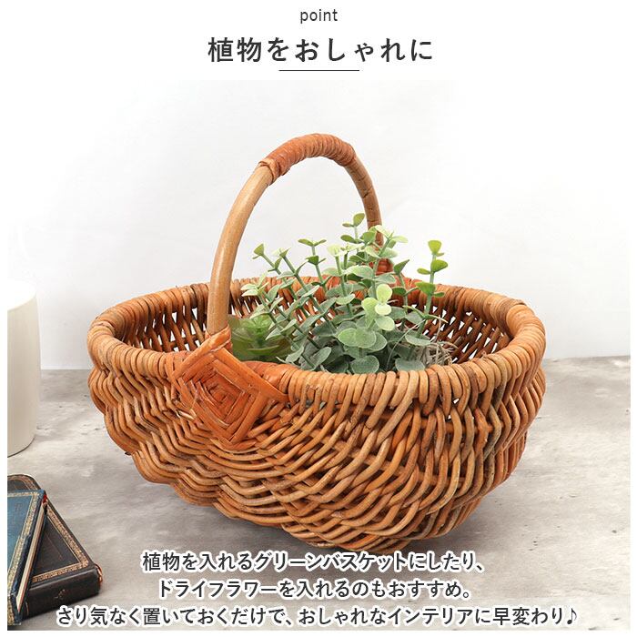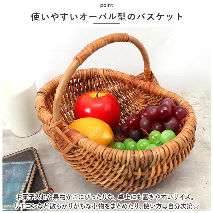ラタン バスケット M 通販 アラログ ピクニック かご カゴ ハンドル Mサイズ 編み 小物入れ 収納 藤 天然素材 ハンドルバスケット 籠 果物かご フルーツバスケット オーバル型 Creer クレエ おしゃれ ナチュラル キッチン収納 かわいい