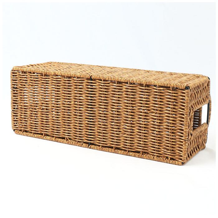 ・アイアンフレームに、PP製のラタンを編み上げたボックス。インテリアに溶け込みつつ、生活感が出やすい電源タップやコード類をすっきり収納。