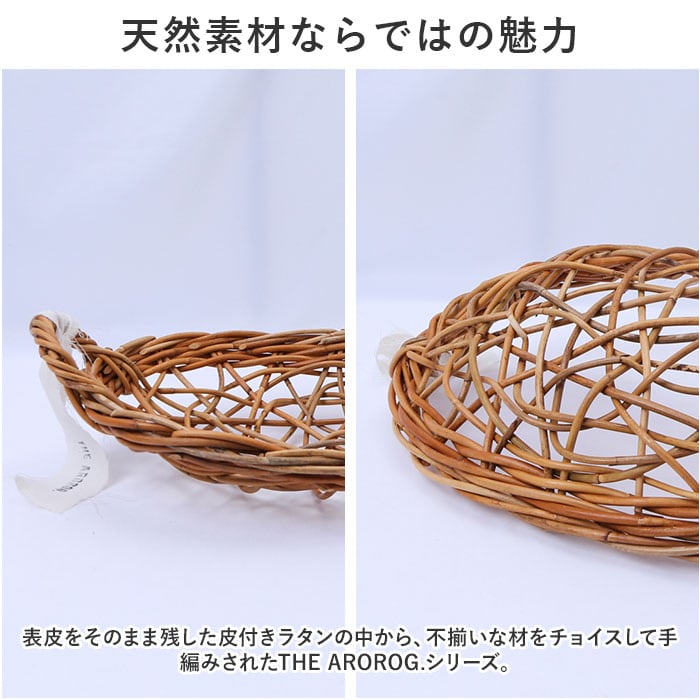 ・表皮をそのまま残した皮付きラタンの中から、不揃いな材をチョイスして手編みされたTHE AROROG.シリーズ。どこか懐かしい、温かみのある仕上がりに。(※表皮の剥がれ、黒い斑点やささくれ・つるの折れなどが生じる場合がございます。)
