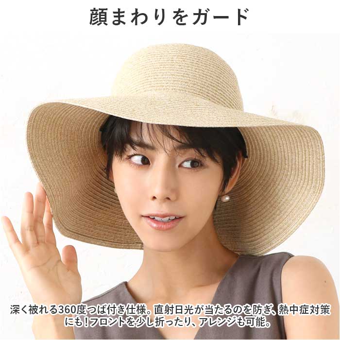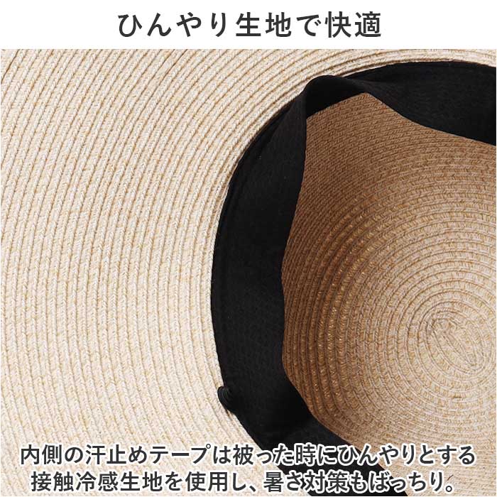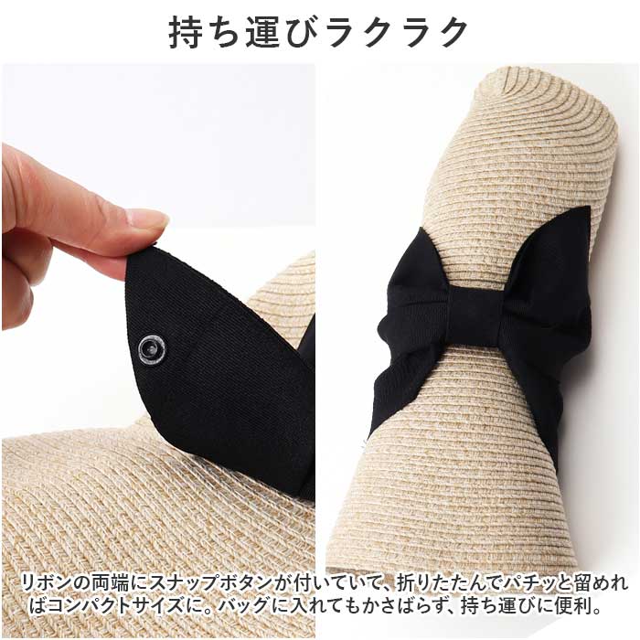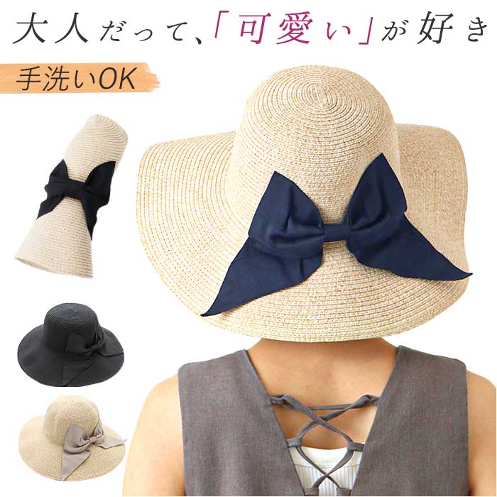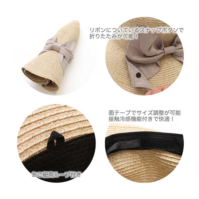 帽子 レディース ハット 通販 ツバ広 バッグリボン リボン 大きい 手洗い ウォッシャブル ひんやり 冷感 接触冷感 あご紐 ループ 調整可能 コンパクト 持ち運び 収納 夏 快適 きれいめ 上品 かわいい 可愛い シンプル カジュアル おしゃれ