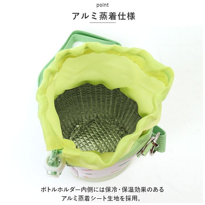 ・ボトルホルダー内側には保冷・保温効果のあるアルミ蒸着シート生地を採用。